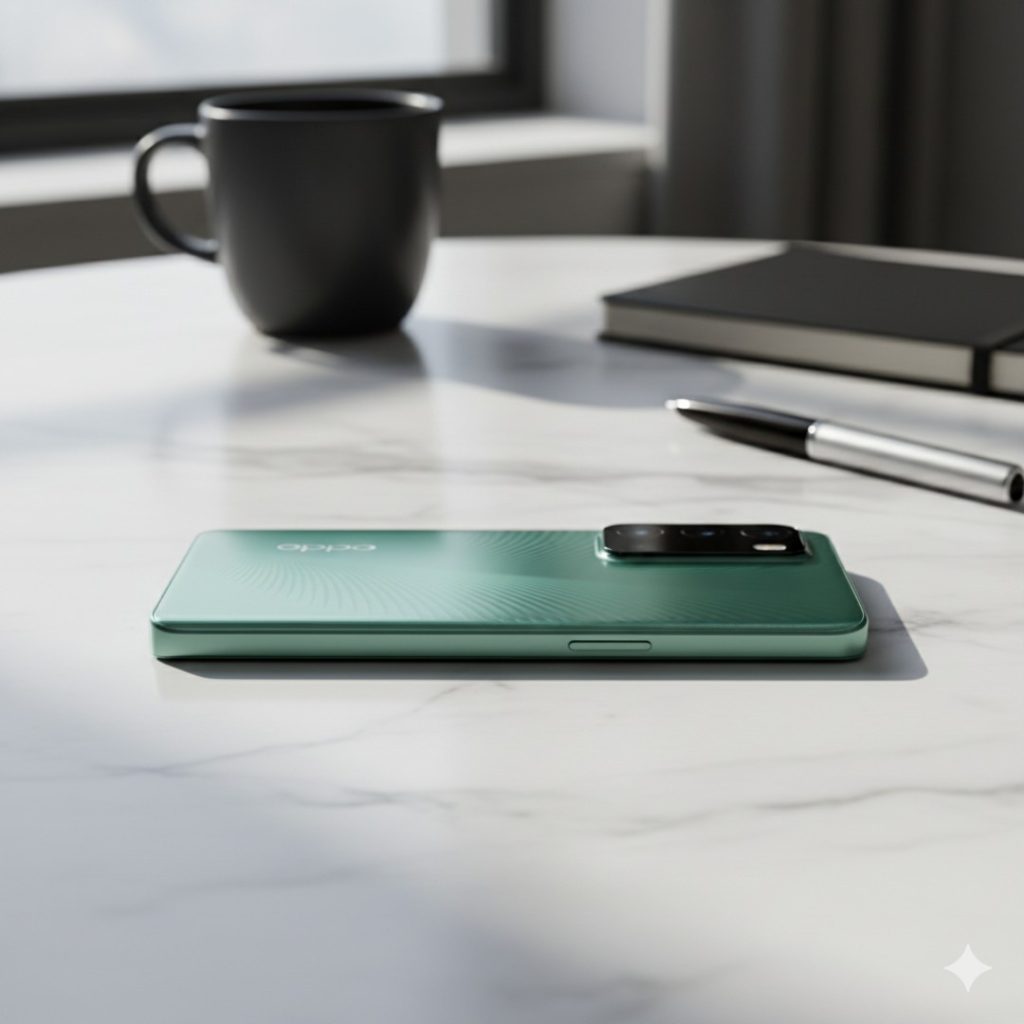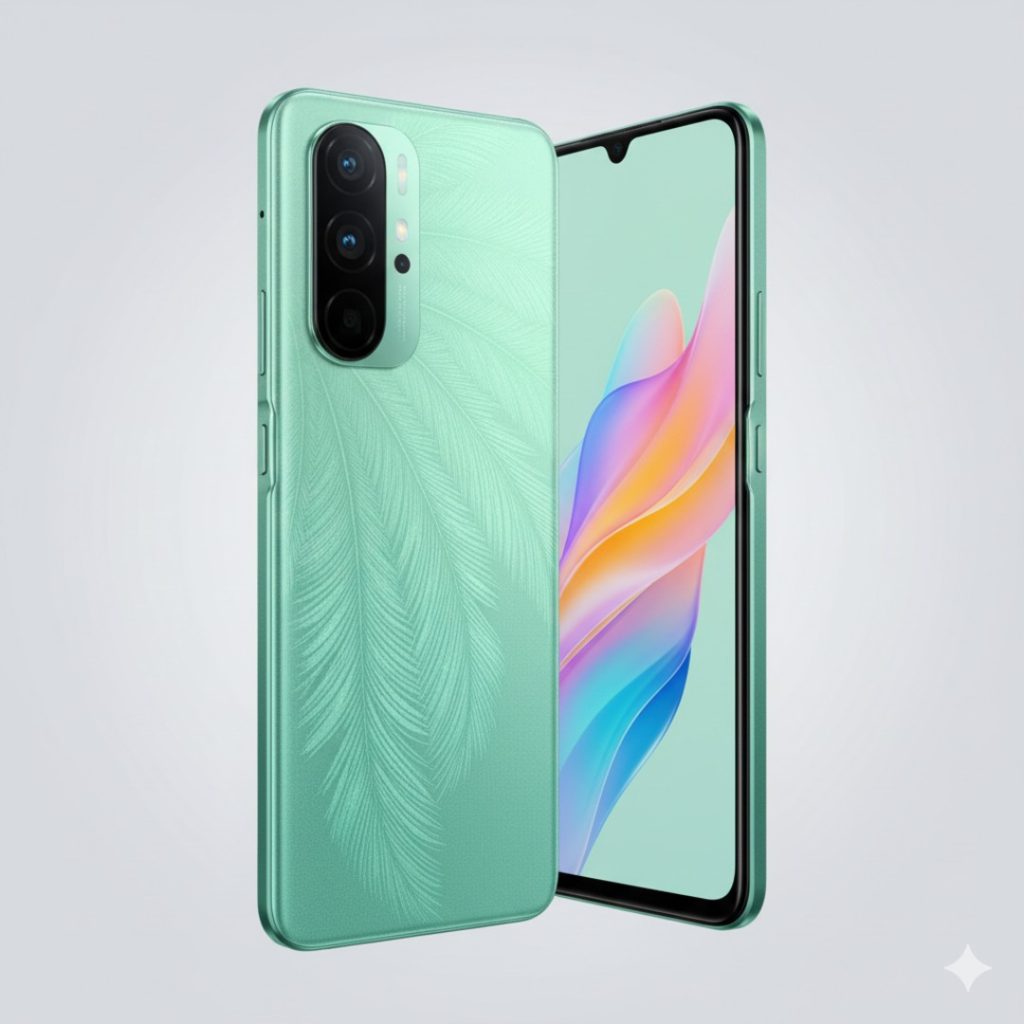 OPPO calls this the “Glowing Feather Design,” and honestly, it’s the best part of the phone. In a world of boring black bricks, the A79 5G stands out. The back has a texture that looks like fine silk under the light.